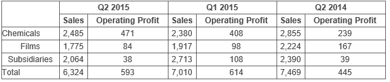 Key front industries such as displays and mobile devices continue to be sluggish, but sales of heat-shrinkable and industrial films remain solid. Against this backdrop, the film business achieved a 4.7% operating margin, mainly driven by the strong sales of high-performance materials and fresh demand from new clients.
