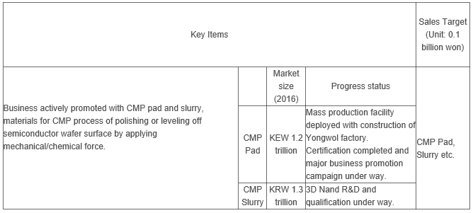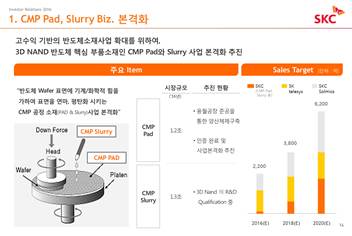 SKC is actively promoting CMP pad and slurry, core materials of 3D and NAND semiconductor parts to establish a highly profitable semiconductor materials business.