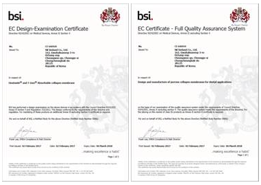 ● First Korean company to acquire CE certification from British royal family-authorized BSI for collagen dental membrane products
