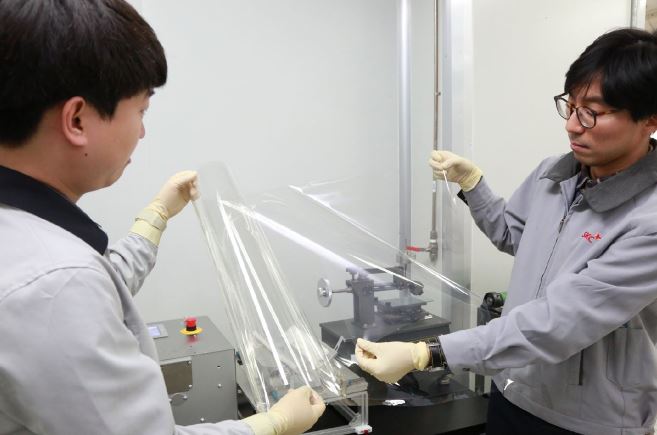 SKC (CEO Lee Wang-jae) officially announced that it is starting the business of transparent PI film, the core material of foldable displays. Transparent PI film has a hard surface like glass but is foldable. Furthermore, no trace remains even when it is folded multiple times. It has emerged as an important material that can replace the existing cover glass sheets in next-generation displays like foldable or rollable displays.