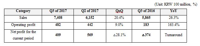 Company expects sales of KRW 700~750 billion and operating profit of KRW 47~52 billion for the 4th quarter