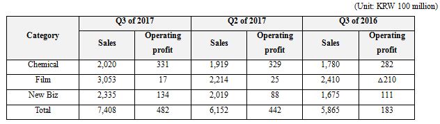 Traditionally, the 4th quarter is a lean season for the film industry, and the business is expected to see some decline. Nonetheless, SKC plans to concentrate on high-value specialty products while strongly advancing overall business for better profit-loss structure following 2018.
