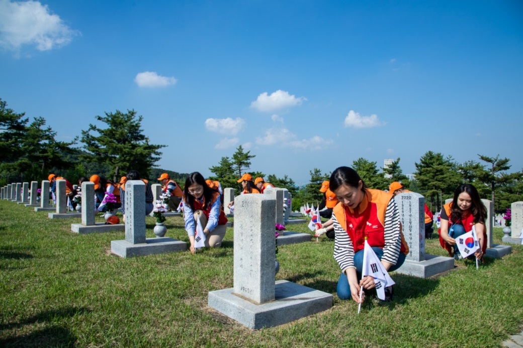 SKC officers and employees have planted flowers and national flags and cleaned up the graves in nineteen grave boundaries twice a year for ten years ever since the signing of a brotherhood agreement with Seoul National Cemetery in 2008. SKC formed the voluntary service corps in 2004. About thirty members of the corps paid silent tribute to the souls of all the heroes who died defending their homeland at the Memorial Tower, and planted national flags and flowers and cleaned the graves in a section in which 913 fallen heroes and patriots are buried. [End]